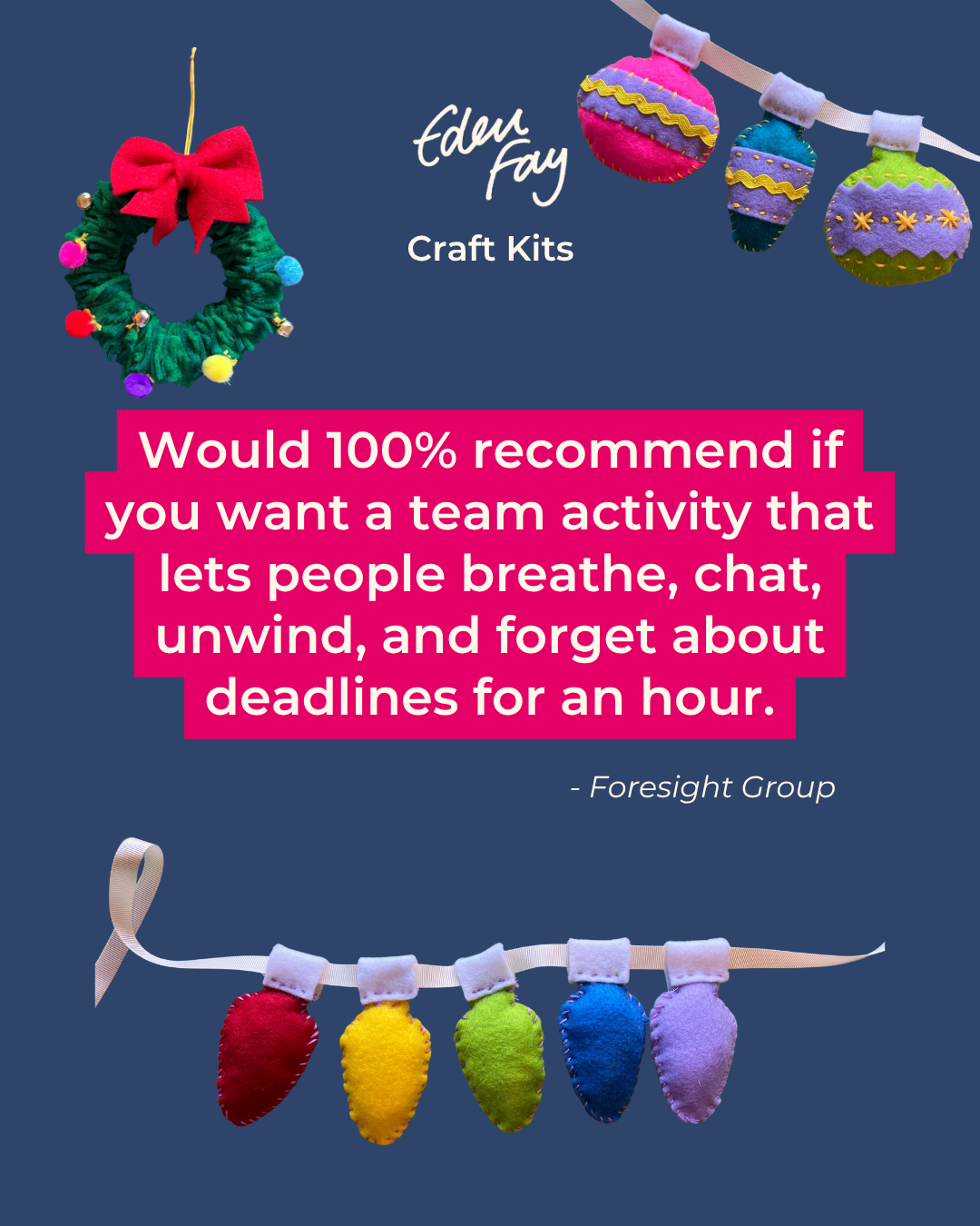 My Mini Christmas Wreath Kits are perfect for team wellbeing sessions, holiday socials, or gifting. No prior sewing experience is needed!