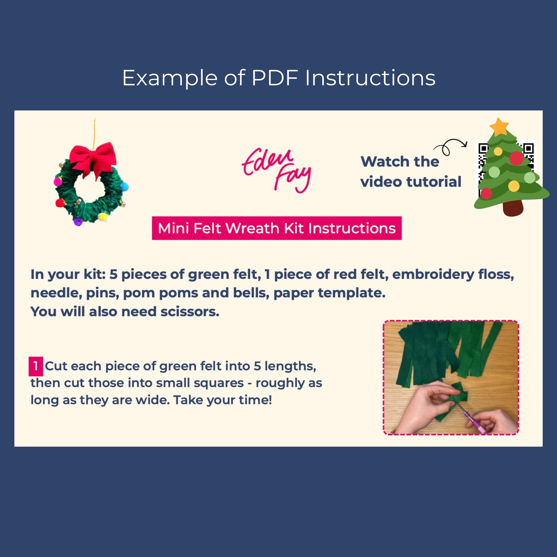 Create your own adorable mini felt wreath with this beginner-friendly craft kit - perfect for adding a touch of handmade charm to your home or gifting as a thoughtful, creative experience.