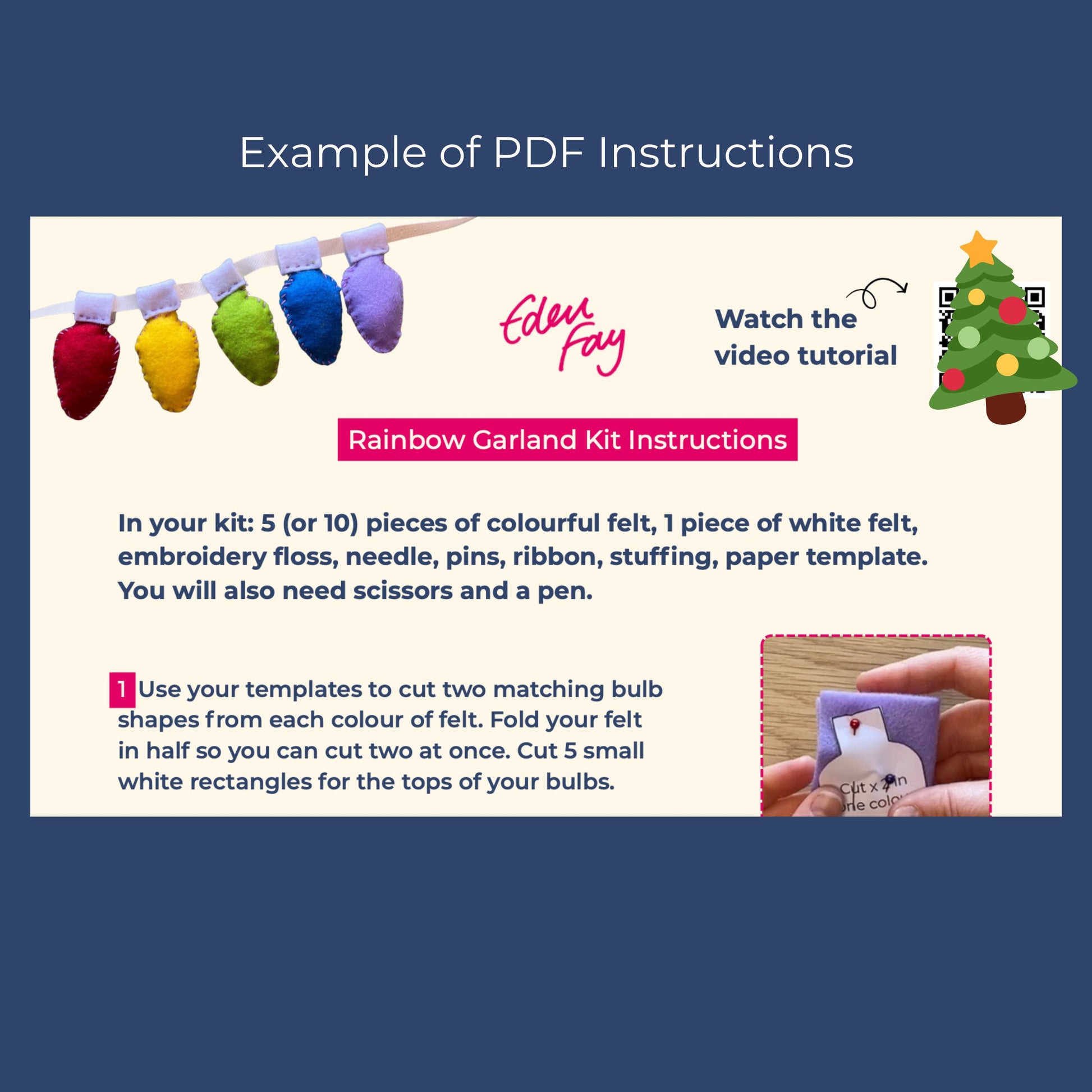 📦 Includes: 5 colours of felt, thread, needle, pins, stuffing, templates, ribbon, video + PDF guide